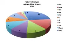 Since the 2011 provincial elections, the seats of the States of Utrecht are as following:[2]
