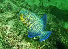 Pseudobalistes fuscus (common names: blue triggerfish, rippled triggerfish, yellow-spotted triggerfish and blue-and-gold triggerfish) is a fish belonging to the family Balistidae.[1][2]