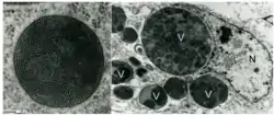The beak and feather disease virus (BFDV) is currently considered a member of the family Circoviridae. Like other circoviruses, BFDV possesses a small, circular single-stranded DNA (ssDNA) genome (approximately 2.0 kb in length) that is encapsidated into a non-enveloped, spherical icosahedral virion.[8] In order to replicate its genome, BFDV needs to invade the nucleus to access the transcriptional machinery of the host cell. The replication of BFDV is known to occur in numerous tissues, including skin, liver, gastrointestinal tract, and bursa of Fabricius;[9][10] while the capsid antigen of BFDV is found in the spleen, thymus, thyroid, parathyroid and bone marrow.[11] However, the distinction between viral entry and replication in a host cell remains unclear in the absence of confirmation in suitable cell culture. Viral attachment and entry into host cells may not necessarily lead to viral replication, and consequently not all cells containing viral particles may contribute to the disease progression. However, it is thought that the BFDV encodes proteins that actively transport the viral genome into the nucleus, as well as factors that direct the precursor DNA exit to the cytoplasm, where it causes large globular intracytoplasmic paracrystalline arrays.[8]