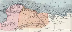 The Ptolemais of Libya, whose ruins are located near the Libyan city of Tolmeita, was also the Seat of the ancient Christian bishopric of Libya Pentapolitana.[8][9][10]
