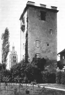The precursor of the currently existing observatory was founded in 1774 at the Saint Emmeram's Abbey. Prince-Abbot Frobenius Forster dedicated two towers of the abbey which were prepared for astronomical and meteorological observations in the years 1774 and 1775.[2] When the abbey was dissolved in 1812, the observatory was moved into a tower in the city wall. This tower was named Placidustower after Placidus Heinrich, one of its first users and a monk of the Order of Saint Benedict. Placidus Heinrich introduced astronomy as a subject at the Lyzeum in Regensburg, a university dedicated to Philosophy and Theology. The remaining instruments are now part of the historical collection at the University of Regensburg.