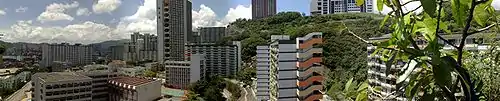 Highland Park (Chinese: 浩景臺) is a SCHS estate,[8] developed by the HKHS and situated at the mid-level of Lai King Hill, Kwai Chung.[13] Formerly the site of Lai King Temporary Housing Area (Chinese: 荔景臨時房屋區),[11] It has totally 6 blocks built in 1999, offering 1,456 flats.[14]