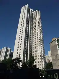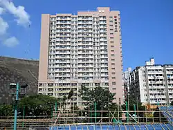 Tsui Ping Estate (Chinese: 翠屏邨) is an estate redeveloped in the 1980s and the 1990s. It is divided into Tsui Ping (South) Estate (Chinese: 翠屏(南)邨) and Tsui Ping (North) Estate (Chinese: 翠屏(北)邨).[3] The redeveloped estate has 19 blocks in total.