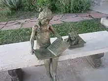Libraries often display exhibits inside and outside the structures, as this sculpture of a little girl reading at the public library in Trinidad, Colorado.