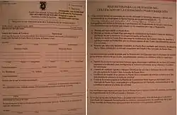 - Application for Certificate of Citizenship of Puerto Rico (in Spanish)