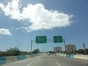 Puerto Rico Highway 12 (PR-12), also called Avenida Malecón,[3] and Avenida Santiago de los Caballeros, is a 6.4-kilometer,[4] limited-access highway entirely located within the city limits of Ponce, Puerto Rico, and connecting Puerto Rico Highway 14 to the La Guancha area in Barrio Playa in Ponce.[5] It is similar to a freeway but has one traffic light near its intersection with PR-14. In addition to its northern and southern terminus, the highway has four full interchange exits: PR-52, PR-2, PR-133/Calle Comercio, and Avenida Las Américas. Since PR-12's southern terminus is at the Port of Ponce, its traffic volume is expected to grow as construction in the new Port of the Americas is completed.[6]