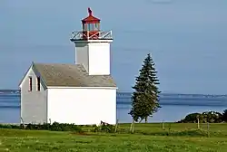 The "schoolhouse" design Pugwash Lighthouse was built in 1871 on Fishing Point at the entrance to Pugwash Harbour. The last keeper left in 1959, and by 2017 the building was in severe disrepair.[3]