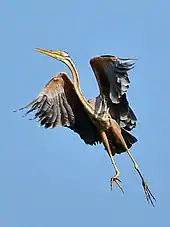The purple heron (Ardea purpurea) is a wide-ranging species of wading bird in the heron family, Ardeidae. The scientific name comes from Latin ardea "heron", and purpureus, "coloured purple".[2] It breeds in Africa, central and southern Europe, and southern and eastern Asia. The Western Palearctic populations migrate between breeding and wintering habitats whereas the African and tropical-Asian populations are primarily sedentary, except for occasional dispersive movements.
