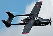 Push-pull designs have the engines mounted above the wing as Dornier flying boats or more commonly on a shorter fuselage than conventional one, as for Rutan Defiant or Voyager canard designs. Twin boomers such as the Cessna Skymaster and Adam A500 have the aircraft's tail suspended via twin booms behind the pusher propeller. In contrast, both the World War II-era Dornier Do 335 and the early 1960s-designed French Moynet M 360 Jupiter experimental private plane had their pusher propeller behind the tail.[1][2]