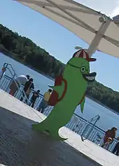 Along this spillway are a wildlife museum and the Linesville spillway, a site famous as "The Place Where the Ducks Walk on the Fishes' Backs".[1][5] Many people throw bread into the water here, and the resulting density of fish (carp) enables the ducks and other waterfowl to walk on top of the carp to vie for the thrown food. The spillway was renovated in 2007.[1] The Pennsylvania Department of Conservation and Natural Resources had planned to prohibit bread as food for the carp and ducks on January 1, 2009, only permitting commercial fish food as part of an effort to clean up the area and increase its wild nature, but subsequently reconsidered.[6]