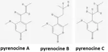 - Sparace, S. A.; Reeleder, R. D.; Khanizadeh, S. (1987). "Antibiotic activity of the pyrenocines". Canadian Journal of Microbiology. 33 (4): 327–30. doi:10.1139/m87-055. PMID 3594310.