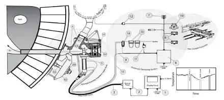 A hot air balloon is equipped with a pyrometer for measuring the temperature at the top of the envelope in order to prevent overheating of the fabric.