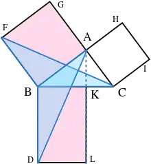 - Therefore, rectangle BDLK must have the same area as square BAGF = AB2.