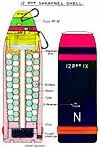 The gun fired the same 12.5 lb 3-inch (76 mm) shells as the other British "QF 12 pounder" guns, but used its own larger separate cartridge case to accommodate a larger quantity of cordite propellant.
