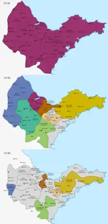 In 201 BC, Emperor Gaozu installed his eldest son Liu Fei as the King of Qi, known posthumously as King Daohui. According to an order by Emperor Gaozu, "All the people who are able to speak the language of Qi shall be granted to Qi [Kingdom]."[3] At the time, Qi consisted of seven commanderies, namely Linzi, Boyang, Jibei, Jiaodong, Jiaoxi, Chengyang and Langya.[1]