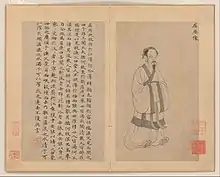 Qu Yuan began to be treated in a nationalist way as "China's first patriotic poet" during World War II.[17] Wen Yiduo—a socialist poet and scholar later executed by the KMT—wrote in his Mythology & Poetry that, "although Qu Yuan did not write about the life of the people or voice their sufferings, he may truthfully be said to have acted as the leader of a people's revolution and to have struck a blow to avenge them. Qu Yuan is the only person in the whole of Chinese history who is fully entitled to be called 'the people's poet'."[18] Guo Moruo's 1942 play Qu Yuan[19] gave him similar treatment, drawing parallels to Hamlet and King Lear.[17] Their view of Qu's social idealism and unbending patriotism became canonical under the People's Republic of China after the 1949 Communist victory in the Chinese Civil War.[17][12] For example, one high-school Chinese textbook from 1957 began with the sentence "Qu Yuan was the first great patriotic poet in the history of our country's literature".[20] This cult status increased Qu Yuan's position within China's literary canon, seeing him placed on postage stamps[21] and the Dragon Boat Festival elevated to a national holiday in 2005. It has, however, come at the expense of more the critical scholarly appraisals of Qu Yuan's historicity and alleged body of work that had developed during the late Qing and early Republic.[17]