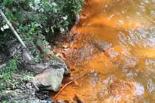 Quaker Run has a thick layering of iron precipitate along its length. The layering is more thick and solidly packed than in some other nearby streams.[3] Historically, there was a quarry near the stream.[10] Mine complexes also extend under the stream.[4]