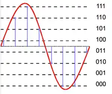 The difference between an input value and its quantized value (such as round-off error) is referred to as quantization error. A device or algorithmic function that performs quantization is called a quantizer. An analog-to-digital converter is an example of a quantizer.
