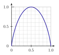 The plot of von Neumann entropy Vs Eigenvalue for a bipartite 2-level pure state. When the eigenvalue has value .5, von Neumann entropy is at a maximum, corresponding to maximum entanglement.