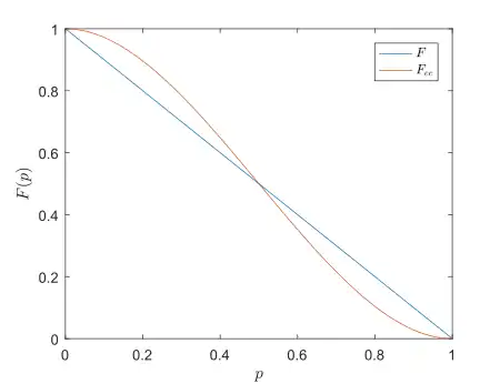 Note that, while this procedure perfectly corrects the output when zero or one flips are introduced by the channel, if more than one qubit is flipped then the output is not properly corrected. For example, if the first and second qubits are flipped, then the syndrome measurement gives the outcome , and the third qubit is flipped, instead of the first two. To assess the performance of this error correcting scheme for a general input we can study the fidelity between the input and the output . Being the output state correct when no more than one qubit is flipped, which happens with probability , we can write it as , where the dots denote components of resulting from errors not properly corrected by the protocol. It follows that