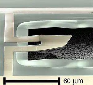 The first quantum machine was created on August 4, 2009 by Aaron D. O'Connell while pursuing his Ph.D. under the direction of Andrew N. Cleland and John M. Martinis at the University of California, Santa Barbara. O'Connell and his colleagues coupled together a mechanical resonator, similar to a tiny springboard, and a qubit, a device that can be in a superposition of two quantum states at the same time. They were able to make the resonator vibrate a small amount and a large amount simultaneously—an effect which would be impossible in classical physics. The mechanical resonator was just large enough to see with the naked eye—about as long as the width of a human hair.[4] The groundbreaking work was subsequently published in the journal Nature in March 2010.[5] The journal Science declared the creation of the first quantum machine to be the "Breakthrough of the Year" of 2010.[6]