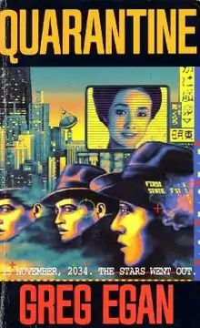 Quarantine is a hard science fiction novel by Greg Egan. Within a detective fiction framework, the novel explores the consequences of the Copenhagen interpretation of quantum mechanics (or rather of its consciousness causes collapse variant), which Egan acknowledges was chosen more for its entertainment value than for its likelihood of being correct.[1]