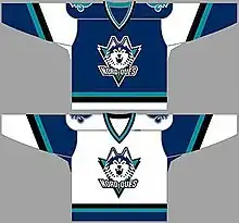 Aubut intended to change the team's entire look had he won enough financing to keep the Nordiques in Quebec for the 1995–96 season. The Nordiques would have abandoned the blue, white, and red palette they had worn throughout their history in favour of a teal, black, and navy scheme. The team would also have abandoned the "igloo holding a hockey stick" logo they had used for their entire existence in favour of a fierce looking Siberian husky, with "NORDIQUES" in grey block letters below it and the "I" in the team's name fashioned to look like an icicle. These designs were published in local papers before the team ultimately decided to move. Due to the team missing an NHL deadline, the logo and uniforms would not have taken effect until the 1996–97 season.[24]