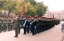The first Colonel was Sir Winston Churchill: after his death in 1965 Cornets from the Regiment stood vigil over his catafalque in Westminster and carried his coffin to the funeral train and to the graveside.[28] Prince Philip was colonel-in-chief throughout the life of the regiment.[2]