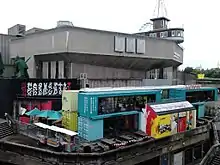 Since 2012, the temporary structure A Room for London has been located on top of the auditorium building.[6] The structure, designed by architect David Kohn[7] is described as "a one-bedroom installation"[6] and is shaped to appear like a boat perched on top of a building.