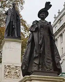 A statue of Elizabeth by sculptor Philip Jackson was unveiled in front of the George VI Memorial, off The Mall, London, on 24 February 2009, creating the King George VI and Queen Elizabeth Memorial.[175]
