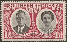 Albert had a stammer, which affected his ability to deliver speeches, and after October 1925, Elizabeth assisted in helping him through the therapy devised by Lionel Logue, an episode portrayed in the 2010 film The King's Speech. In 1926, the couple had their first child, Princess Elizabeth—"Lilibet" to the family—who would later become Queen Elizabeth II. Albert and Elizabeth, without their child, travelled to Australia to open Parliament House in Canberra in 1927.[34] She was, in her own words, "very miserable at leaving the baby".[35] Their journey by sea took them via Jamaica, the Panama Canal and the Pacific; Elizabeth fretted constantly over her baby back in Britain, but their journey was a public relations success.[36] She charmed the public in Fiji when, shaking hands with a long line of official guests, a stray dog walked in on the ceremony and she shook its paw as well.[37] In New Zealand she fell ill with a cold and missed some engagements, but enjoyed the local fishing[38] in the Bay of Islands accompanied by Australian sports fisherman Harry Andreas.[39] On the return journey, via Mauritius, the Suez Canal, Malta and Gibraltar, their transport, HMS Renown, caught fire and they prepared to abandon ship before the fire was brought under control.[40]