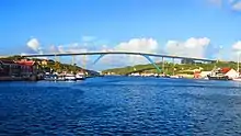 Koningin Julianabrug is a four lane road bridge across St. Anna Bay in Willemstad, the capital of Caribbean island country Curaçao, which is part of The Kingdom of The Netherlands. The bridge is named after Juliana of the Netherlands. While under construction the eastern part of the bridge collapsed in 1967 killing fifteen workers, and got replaced. The current bridge opened on Queen's Day, 30 April 1974.