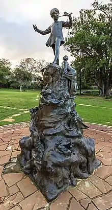 In June 1929 the Rotary Club of Perth presented the Perth City Council with a replica of the Peter Pan statue in Kensington Gardens in London[4] as a gift to the children of Western Australia to mark the state's centenary. The reproduction was produced by the sculptor of the original statue, Sir George Frampton, and autographed by the creator of Peter Pan, Sir J. M. Barrie.