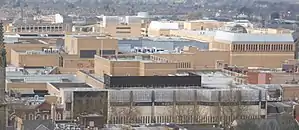 The Queensgate shopping centre is located in the centre of the UK city of Peterborough, in Cambridgeshire. It contains over 100 stores and parking for 2,300 cars in four onsite multi-storey car parks. Queensgate bus station is located within the shopping centre and only a short walk from Peterborough railway station.[1] Peterborough Shop Mobility provide wheelchairs and electric scooters to help those with limited mobility.[2] The centre was opened by Queen Beatrix of the Netherlands on 9 March 1982.[1]