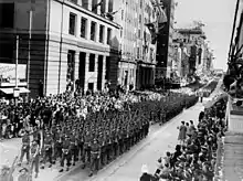 During World War II, Brisbane became central to the Allied campaign when the AMP Building (now called MacArthur Central) was used as the South West Pacific headquarters for General Douglas MacArthur, chief of the Allied Pacific forces, until his headquarters were moved to Hollandia in August 1944.[32] In 1942, during the war, Brisbane was the site of a violent clash between visiting US military personnel and Australian servicemen and civilians, which resulted in one death and hundreds of injuries. This incident became known colloquially as the Battle of Brisbane.[33]
