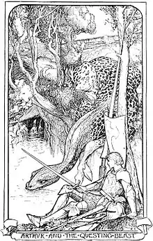 The Questing Beast or the Beast Glatisant is a cross-animal monster from Arthurian legend. In the French prose cycles, and consequently in Le Morte d'Arthur, the hunt for the Beast is the subject of quests undertaken by Pellinore and his family and achieved by Palamedes and his companions.