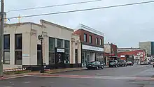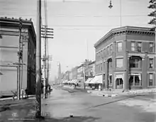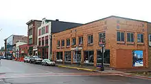 The Quincy Street Historic District covers the central portion of Hancock's business district consisting of the first three blocks of Quincy Street, plus two adjacent properties.[2] The district includes three governmental structures (the Hancock Town Hall and Fire Hall, post office, and a county office building) along with forty-two commercial buildings.[2] The majority of the structures within the district were built between 1880 and 1915. The commercial buildings range from two to five stories, and are of frame, brick, or brick and stone construction.[2] The district is notable for the widespread use of local red Jacobsville sandstone.[2]