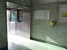 Entrance/Exit to Quintino Sella Station seen from the inside. Ticket puncher (yellow) is attached to the wall.