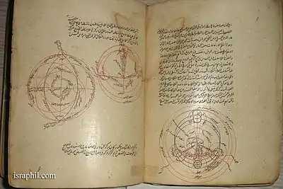 ![]() Photo taken from medieval manuscript by Qutb al-Din al-Shirazi. The image depicts an epicyclic planetary model. | |
