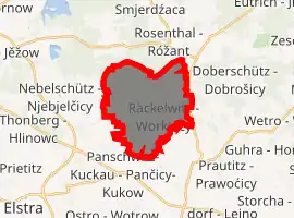 Räckelwitz (Sorbian: Worklecy) is a municipality in Bautzen district, in the state of Saxony, Germany. The municipality of Räckelwitz has a population of 1,170 and is a member of the municipal association "Am Klosterwasser" (Zarjadniski zwjazk „Při Klóšterskej wodźe“).