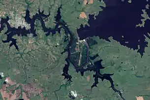 The river is dammed near Paso de los Toros, creating the Rincón del Bonete Reservoir, also called the Gabriel Terra Reservoir or the Rio Negro Reservoir. With a surface area of about 1,100 square kilometres (420 sq mi), it is the largest reservoir in Uruguay and an installed capacity of 160 MW.[2]