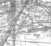 In 1934 American Airlines built an emergency landing strip six kilometres southeast of Jarvis.[6] This airstrip included a beacon light, radio range, and radio operator. The Royal Canadian Air Force (RCAF) used this airfield as the site for No. 1 B&GS.[7]
