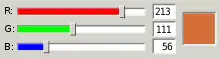 A color in the RGB color model is described by indicating how much of each of the red, green, and blue is included. The color is expressed as an RGB triplet (r,g,b), each component of which can vary from zero to a defined maximum value. If all the components are at zero the result is black; if all are at maximum, the result is the brightest representable white.