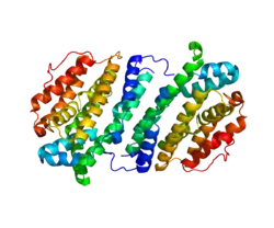 Ribonucleotide-diphosphate reductase subunit M2 B is an enzyme that in humans is encoded by the RRM2B gene.[5][6][7][8] The gene encoding the RRM2B protein is located on chromosome 8, at position 8q23.1. The gene and its products are also known by designations MTDPS8A, MTDPS8B, and p53R2.