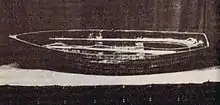 Dudley instantly realized that the yacht was doomed and ordered the single 13-foot (4 m) lifeboat to be lowered. The lifeboat was of flimsy construction, with boards only 0.25 inches (6 mm) thick and was holed in the haste to get it away. Mignonette sank within five minutes of being struck and the crew abandoned ship for the lifeboat, managing only to salvage vital navigational instruments along with two tins of turnips and no fresh water.[10] Theories abound of the structural inadequacies of the yacht that could not withstand the onslaught of a gale.[11]