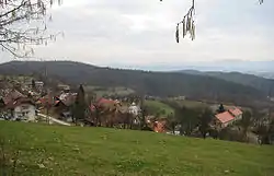 The local church is dedicated to the Holy Cross and belongs to the Parish of Šmartno pod Šmarno Goro. It was first mentioned in written documents dating to 1526.[4] In 1941 it was burned down together with the village. It was restored in 1968, preserving its original layout.[8]