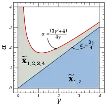 The Rabinovich–Fabrikant system has five hyperbolic equilibrium points, one at the origin and four dependent on the system parameters α and γ:[2]