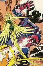 When Rachel was bonded to the cosmic entity known as the Phoenix Force, she demonstrated heightened psi-powers, the ability to manipulate energy and life-forces, and limited cosmic awareness.[11][63][64][65] Rachel's connection to the Phoenix power was lost in the distant future and did not return with her when she traveled back to the early 21st century (present) of Earth-616 (Marvel's mainstream universe).[66]