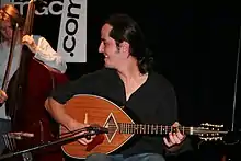 Taha's breakthrough album as a solo artist was his bestseller[4] Diwân, featuring remakes of songs from Algerian and Arab traditions. The album featured traditional instruments like the oud but with a "contemporary veneer of programmed percussion and samples added in."[4] Taha mixed the oud with strings using a contemporary beat along with guitar work, according to one account.[12] Taha's album Tékitoi, produced by Steve Hillage[8] and released in 2004, brought acclaim and recognition from other rock musicians. The title track is "street slang" meaning, roughly, Who the Hell Are You? (from the French Tu es qui, toi ? shortened into T'es qui, toi ?) and the music had "echoes of Joe Strummer", according to a review in The Observer.[18] In 2005 Taha performed with Robert Plant, Patti Smith and Brian Eno.[8] He covered The Clash song "Rock the Casbah" which he retitled with the Arabic name of "Rock El Casbah". This song appeared in the 2007 film about Clash frontman Joe Strummer entitled The Future Is Unwritten.[19] The song suggested rock music as "banned but unstoppable".[2] Taha performed the song along with The Clash musician Mick Jones.[14][20][21] The Guardian selected "Rock El Casbah" as one of the top 50 cover songs.[22]