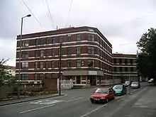 Possibly Radford's greatest historical claim to fame comes from its centrality in the birth of the British motor car industry. The Great Horseless Carriage Company was established in 1896 in converted cotton mill works, and renamed Motor Mills, between St. Nicholas Street, Sandy Lane, and the Coventry Canal.[5] It included a red-brick office block with stone banding on Sandy Lane built 1907-08, and an electricity power house which was added in 1907.[5] Soon after, the company changed its name to Daimler and shortly before the First World War, they moved to a new factory at the Lydgate Road/Sandy Lane Junction. The factory was greatly extended during and after the First World War to incorporate entrances on both Sandy Lane and Middlemarch Road. After a merger in 1960, the factory also became home to Jaguar, who remained there till production ceased in the mid-1990s.